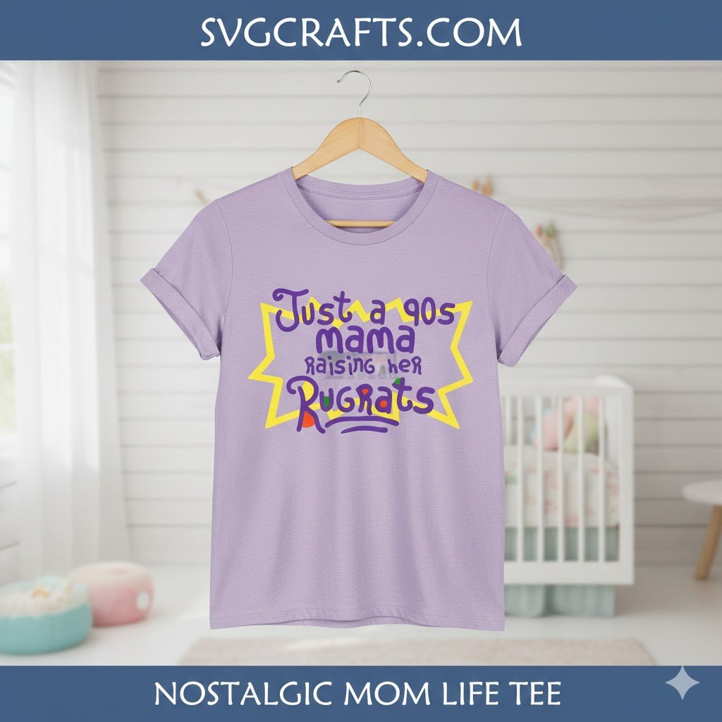 – **Nostalgic Phrase:** The core message ‘Just a 90s Mama raising her Rugrats‘ perfectly encapsulates the humor and relatability for mothers who spent their childhoods in the 1990s.