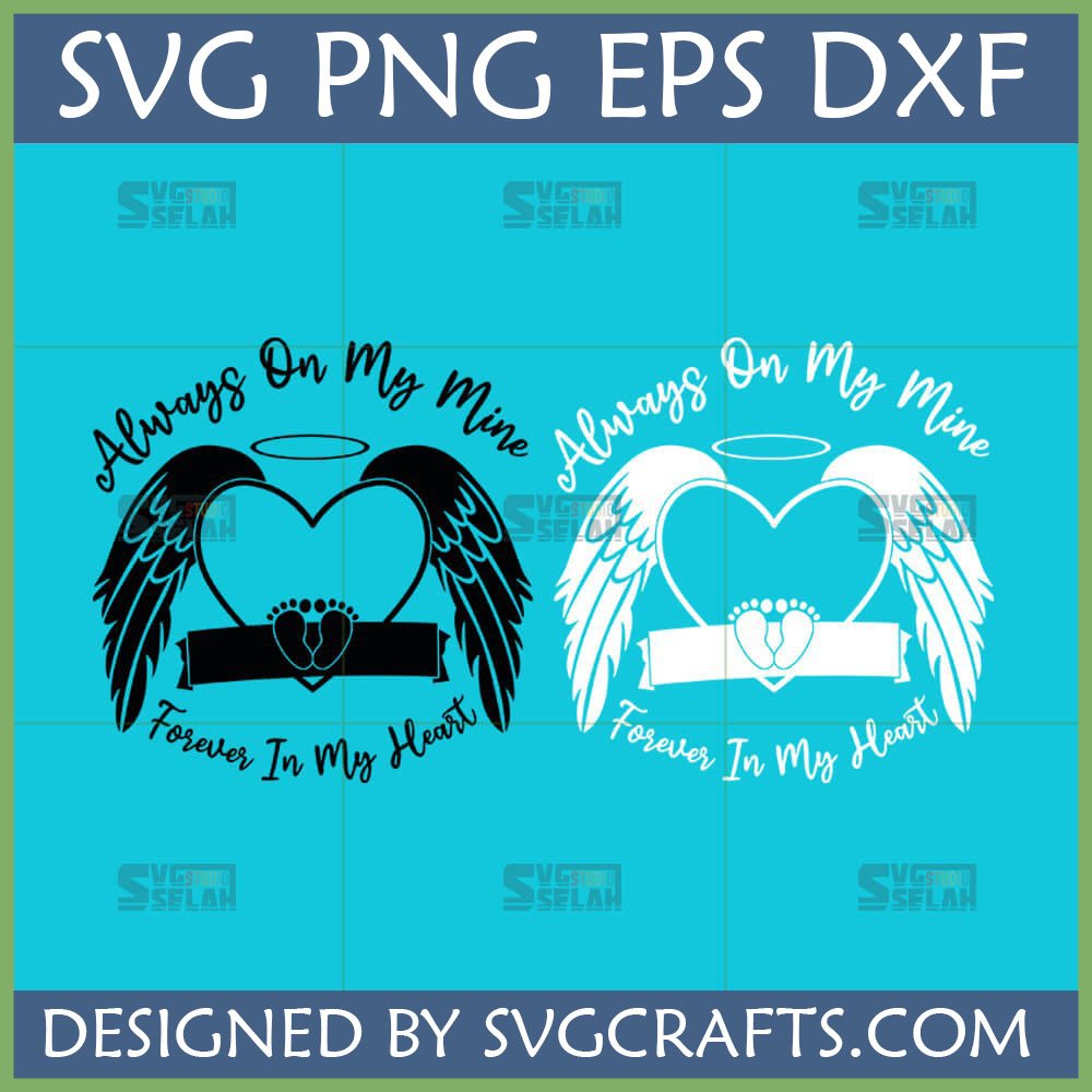 Honor your angel baby with our heartfelt Baby Memorial SVG, featuring wings, a halo, and tiny footprints. Perfect for Cricut and sublimation, this infant loss SVG helps you create lasting tributes that say, “Always On My Mind, Forever In My Heart.”