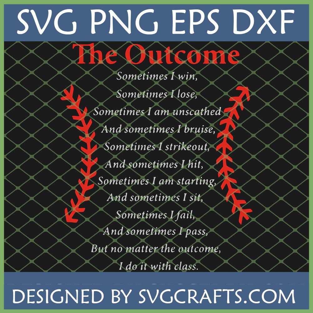 Embrace the journey, celebrate every outcome, and always do it with class. Add this powerful ‘The Outcome’ Baseball Poem SVG to your collection today and create something truly inspiring!