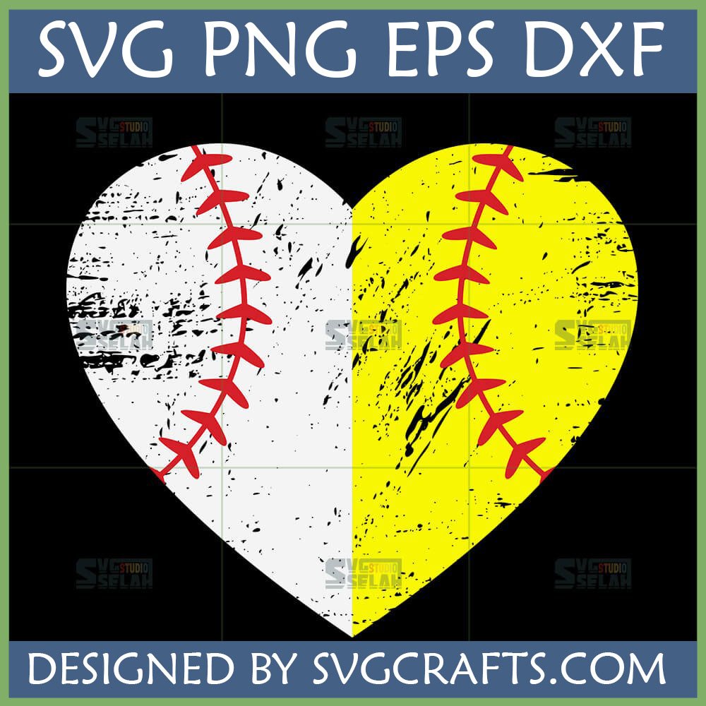 Baseball Softball Heart SVG: Show Your Dual Sports Passion with This Distressed Design!