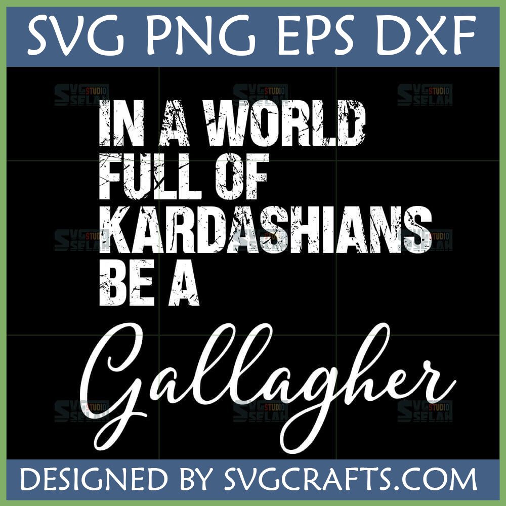 Our Be A Gallagher SVG Design is more than just a graphic; it’s a cultural commentary. Visually, it contrasts the raw, distressed aesthetic of ‘IN A WORLD FULL OF KARDASHIANS BE A’ with the elegant, flowing script of ‘Gallagher’, creating a powerful and humorous statement. This design embodies: