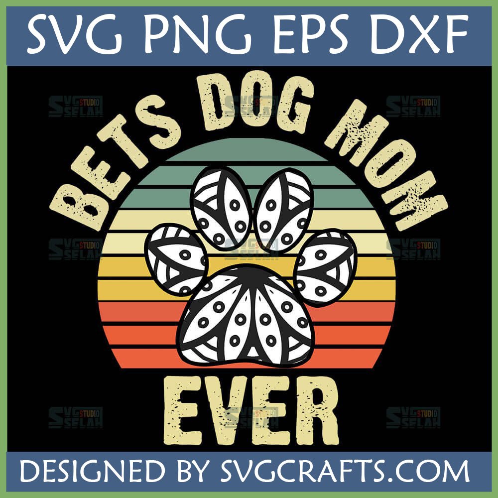Best Dog Mom Ever SVG Retro Sunset Paw Print Digital File