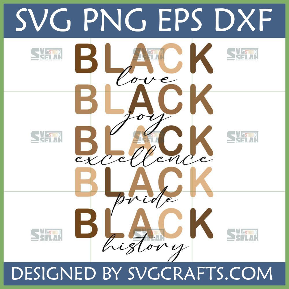 Q: What is the significance of the five words ‘love, joy, excellence, pride, history’ in this Black Culture SVG Design?