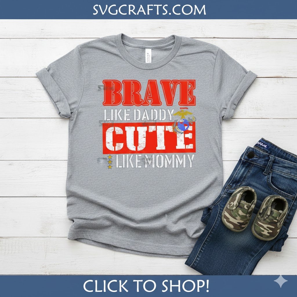 Brave Like Daddy Cute Like Mommy SVG USMC Military Family Digital Design