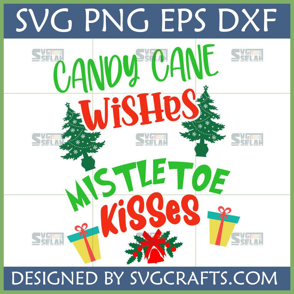 Candy Cane Wishes Mistletoe Kisses SVG Festive Christmas Digital Cut File
