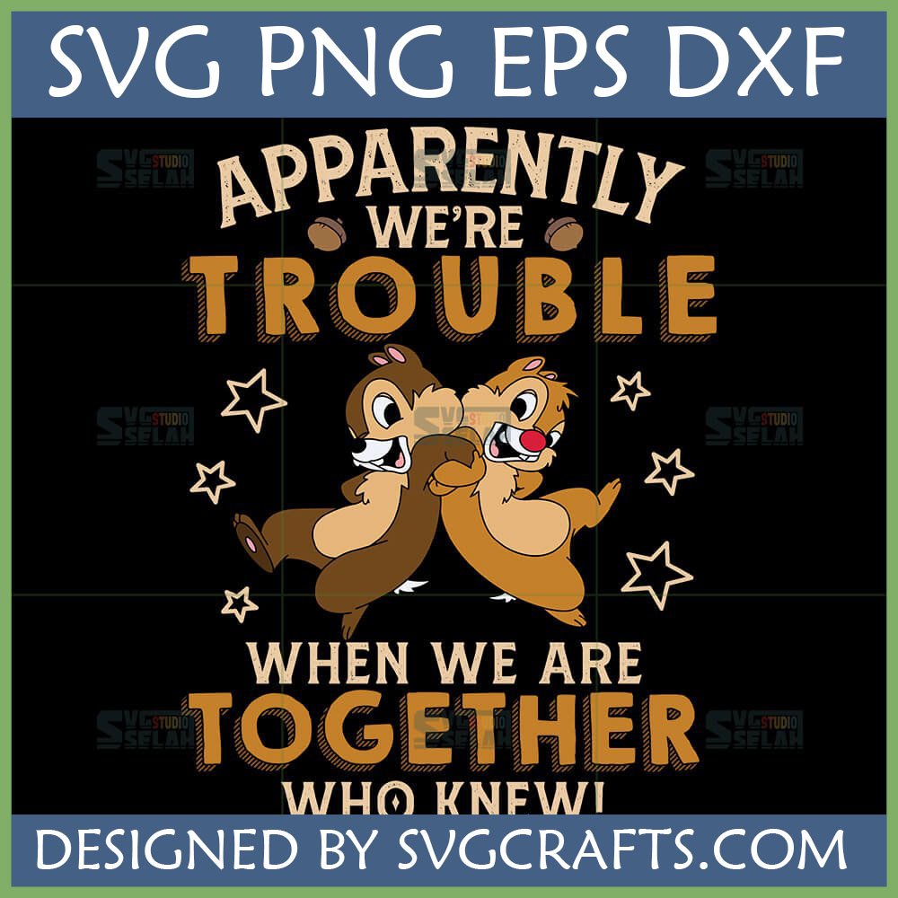 Unleash your inner mischief with this hilarious Chip and Dale Trouble SVG, featuring the iconic duo and a witty ‘Apparently we’re trouble’ quote. Perfect for funny friendship SVG projects, Cricut Disney inspired apparel, and unique gifts for your favorite partner in crime!