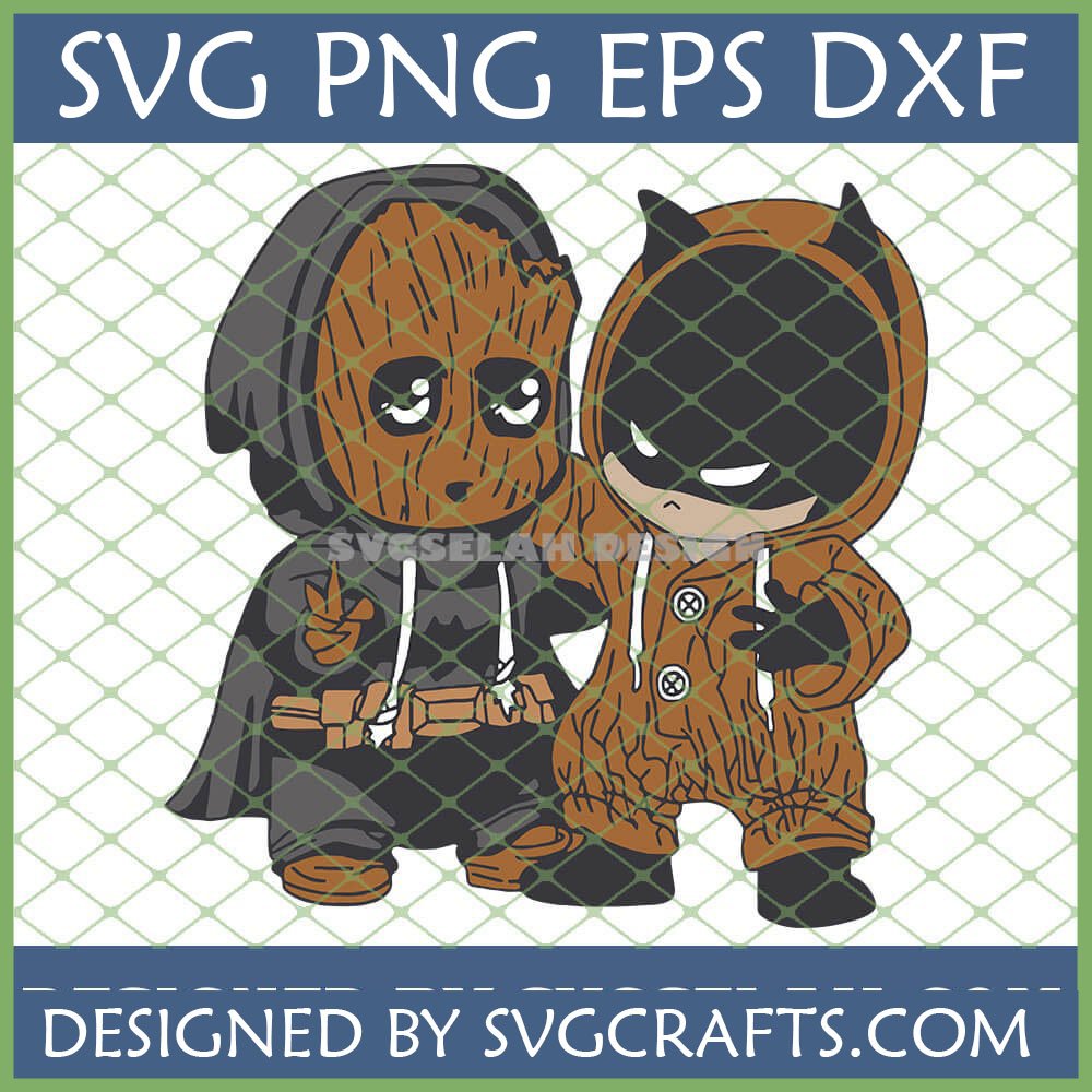 Cute Baby Groot Batman SVG – Adorable Chibi Superhero Friends Digital File