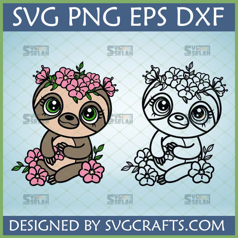 Cute Floral Sloth SVG & PNG Design for Cricut & Crafts
