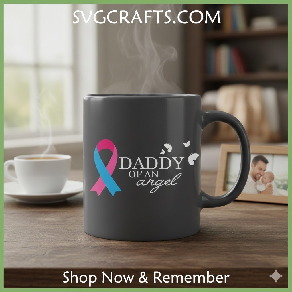 Be a part of the compassionate community honoring angel babies. Use this Remembrance Gift SVG to create beautiful items and share your creations online. Connect with others who understand and support the journey of grief and remembrance. We encourage you to share your finished projects on social media and tag us! Let’s spread awareness and love together. Use our official hashtag: #svgcrafts and other relevant tags like #DaddyOfAnAngel #AngelBabyAwareness #InfantLossSupport #GriefAndLoss #ForeverLoved.