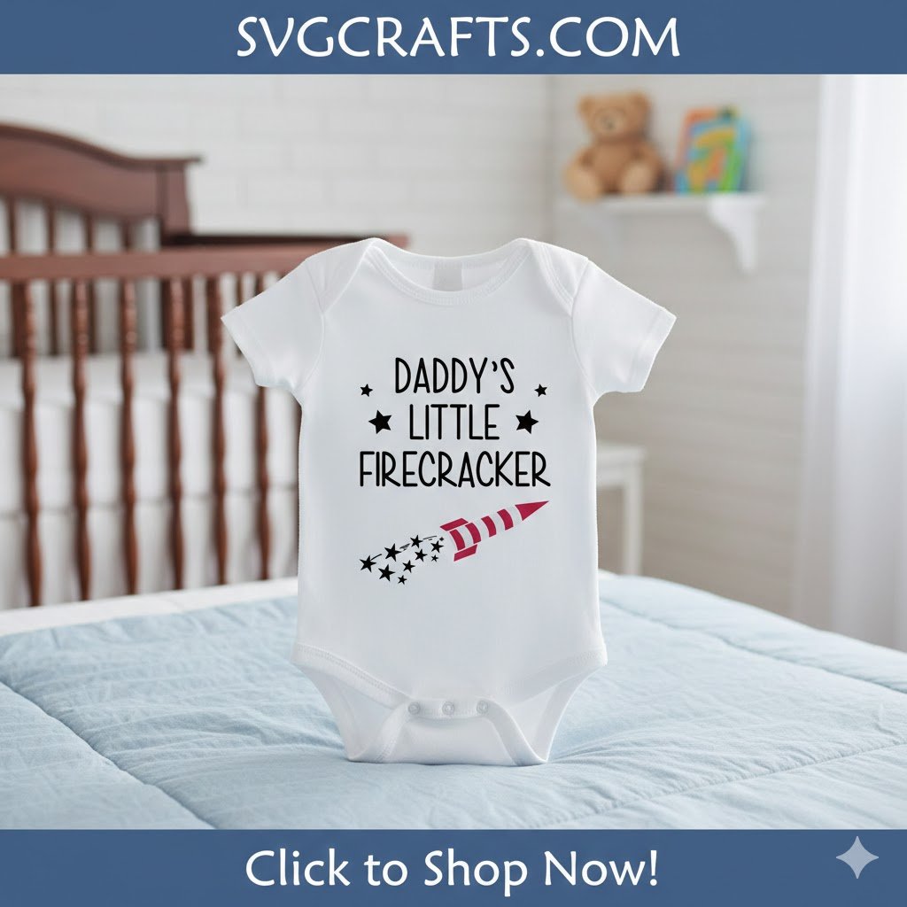 #DaddysLittleFirecracker #4thOfJulySVG #PatrioticBaby #CricutProjects #DIYBabyClothes #IndependenceDay #LittleFirecracker #SVGCrafts #HandmadeWithLove #SummerVibes