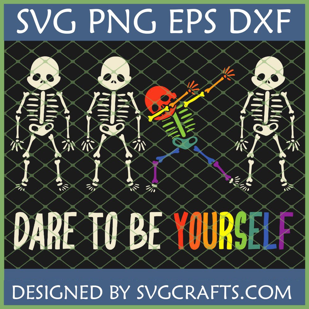 Dare To Be Yourself Rainbow Skeleton SVG – Embrace Your True Colors with This Unique Halloween & Pride Design