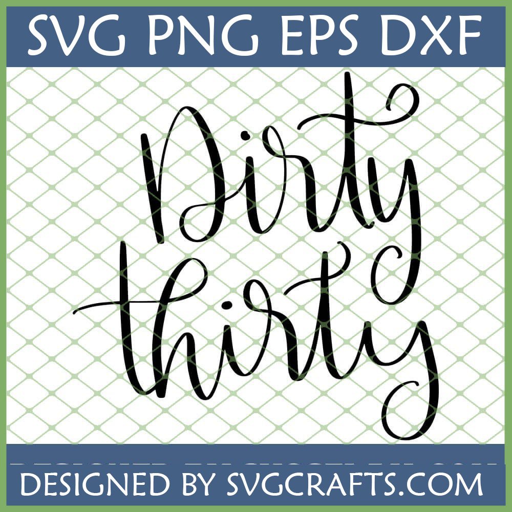 This charming design features the iconic phrase “Dirty thirty” rendered in a beautiful, flowing script font. It’s more than just text; it’s a statement!