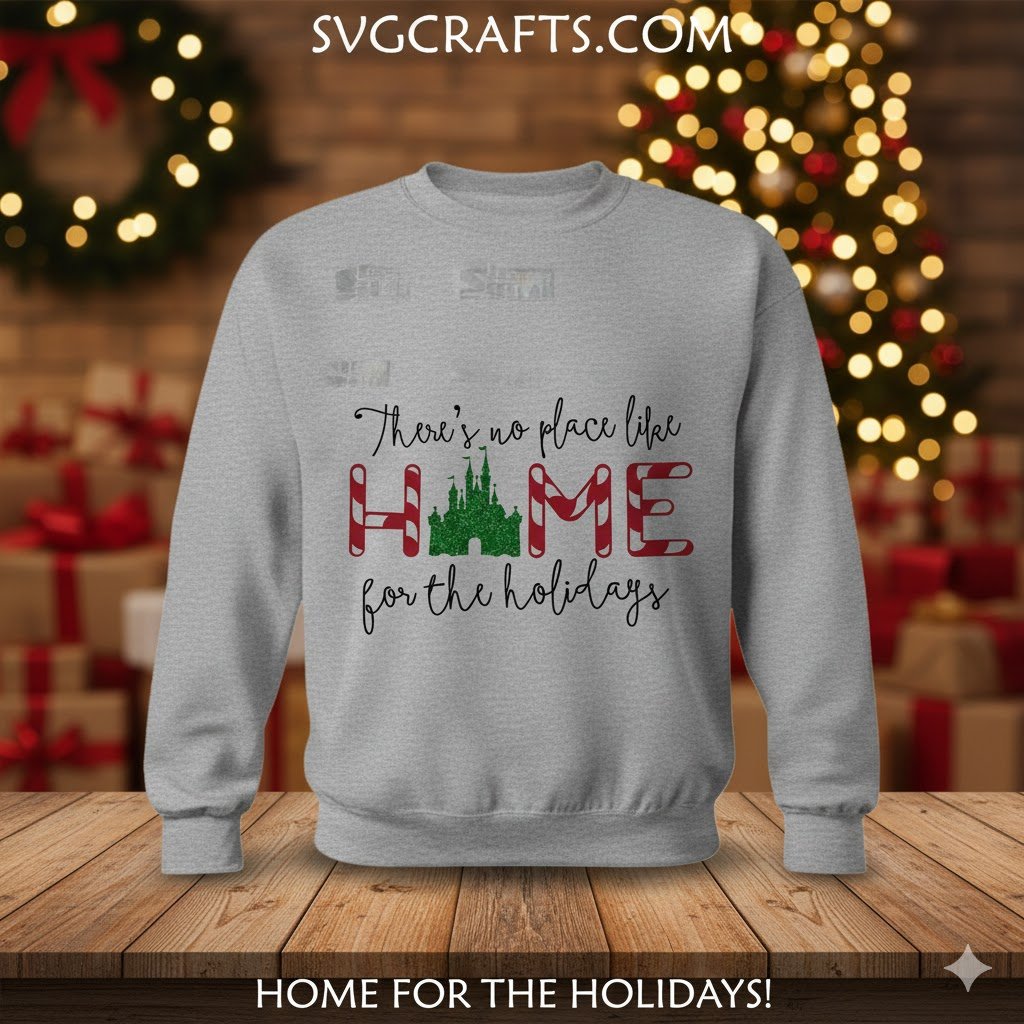 A: The phrase “There’s no place like home” famously comes from The Wizard of Oz, while “for the holidays” extends it to a beloved seasonal sentiment. This design blends that universal feeling of warmth and belonging with the iconic imagery of a magical Disney-inspired castle, creating a unique and heartwarming holiday message that resonates with many.