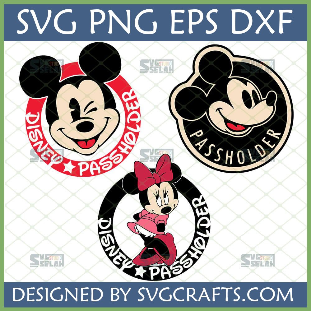 * Iconic Characters: Features both the beloved Mickey Mouse SVG winking playfully and a classic smiling Mickey, alongside a delightful Minnie Mouse in her signature pose, all ready to celebrate the Passholder spirit.