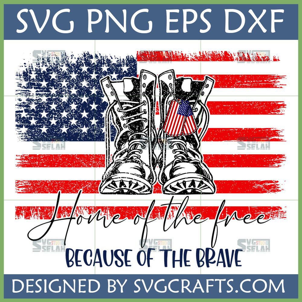 Distressed American Flag Military Boots SVG Home of the Free Because of the Brave Digital File