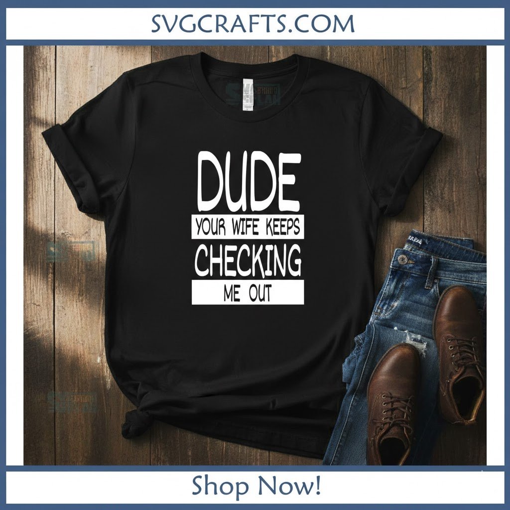 Dude Your Wife Keeps Checking Me Out SVG | Funny T-Shirt Design