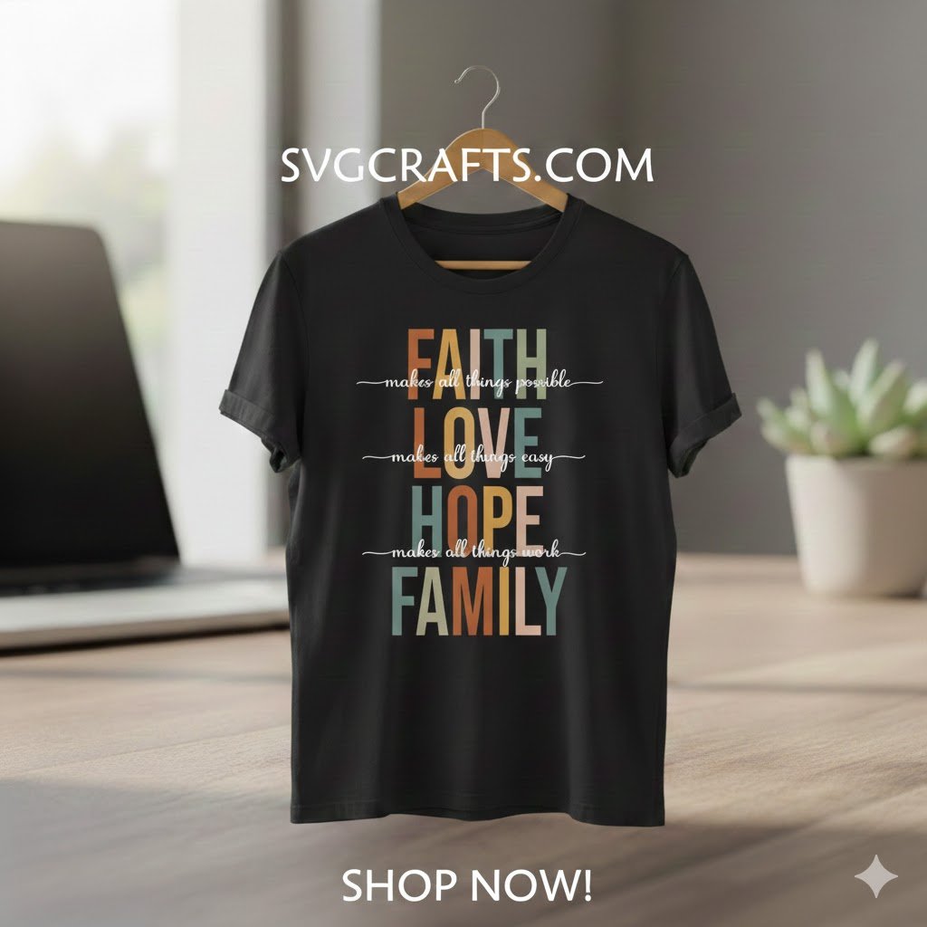 Immerse yourself in the heartwarming essence of our Faith Love Hope Family SVG design. This beautiful digital file captures the core values that enrich our lives, offering a touch of inspiration and warmth to every project. Imagine crafting a cozy throw pillow that radiates love, a personalized mug that starts your day with hope, or a wall decal celebrating the foundation of your family. This design isn’t just a graphic; it’s a feeling, a daily reminder of what truly matters, perfect for those who cherish heartfelt messages and meaningful decor.