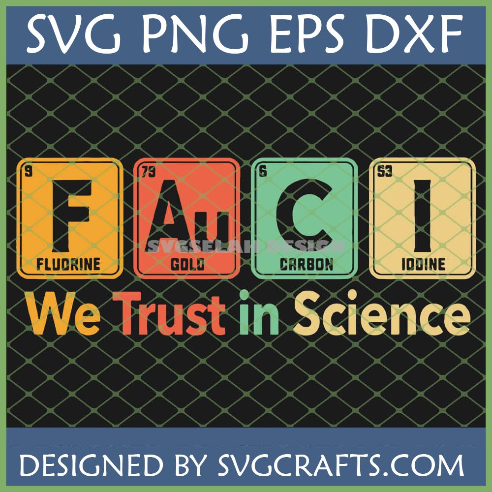 Make a bold statement with our Fauci We Trust in Science SVG! This clever design spells ‘FAUCI’ using periodic table elements (F, Au, C, I) alongside the powerful declaration ‘We Trust in Science.’ Perfect for science enthusiasts, educators, and public health advocates, it’s ready for your Cricut, Silhouette, or sublimation projects to create unique apparel, mugs, and decals. Get your instant digital download and champion scientific truth!