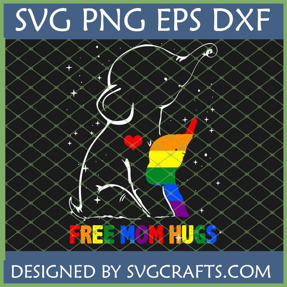 Embrace unconditional love with our heartwarming Free Mom Hugs Elephant Pride SVG digital design. Perfect for Cricut, sublimation, and crafting unique gifts that spread support for the LGBTQ+ community.