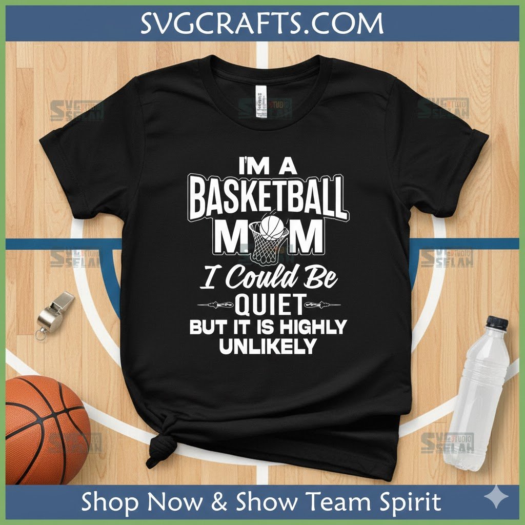 - Central Message: The prominent declaration ‘I’M A BASKETBALL MOM’ clearly establishes identity, while the humorous follow-up ‘I Could Be QUIET BUT IT IS HIGHLY UNLIKELY’ adds a relatable, witty twist.