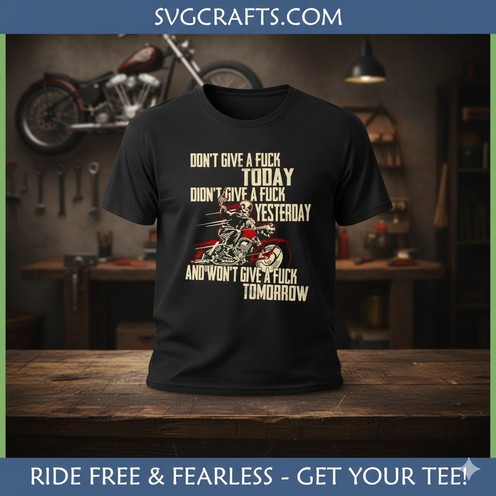 Embrace the ultimate carefree attitude with our exclusive Funny Biker Skeleton SVG design! This striking graphic captures the essence of true independence, featuring a badass skeleton riding a classic chopper, perfectly paired with a hilariously blunt message that resonates with anyone who lives life on their own terms. It’s more than just a design; it’s a statement, a nod to the open road, and a testament to unwavering self-reliance.