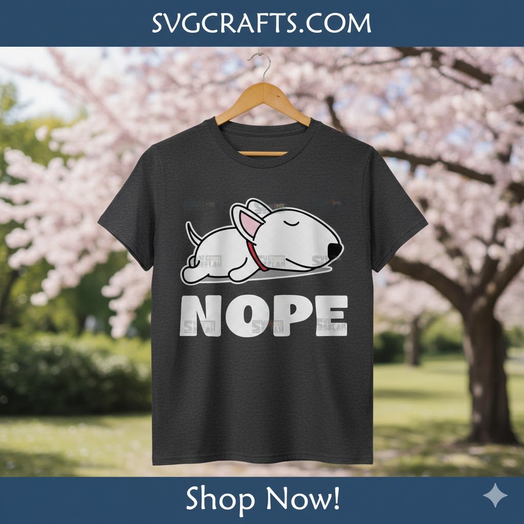 Embrace the ultimate lazy mood with our Funny Bull Terrier Nope SVG! This adorable sleeping Bull Terrier design is perfect for crafting humorous tees, mugs, and gifts. Get your instant digital download for Cricut, Silhouette, and sublimation projects from SVGCrafts.