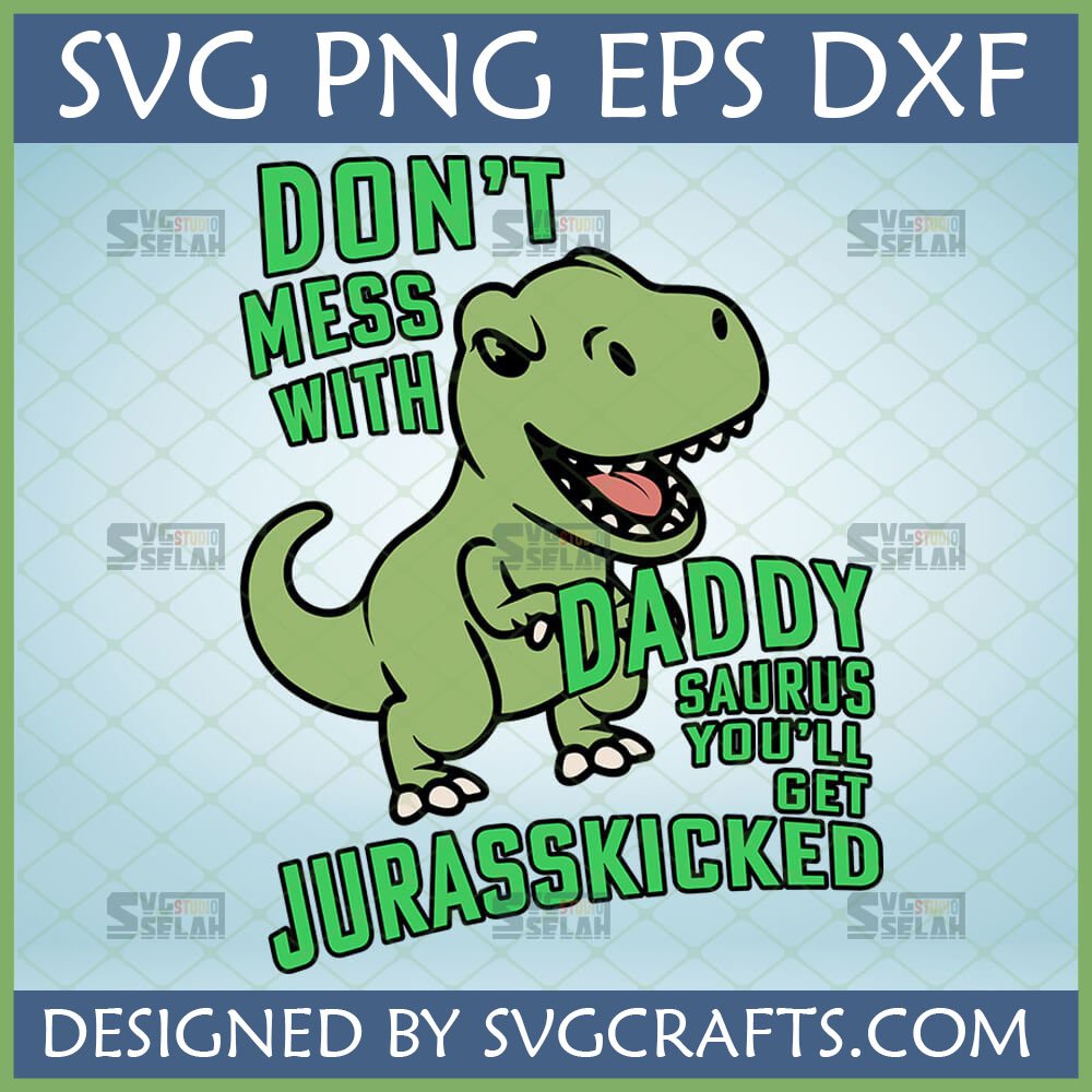 Unleash the roar with our Funny Daddy Saurus SVG! This hilarious design features a protective T-Rex warning, ‘DON’T MESS WITH DADDY SAURUS YOU’LL GET JURASSKICKED,’ making it the perfect Dinosaur Dad SVG for Father’s Day gifts, custom t-shirts, or any proud dad’s collection.