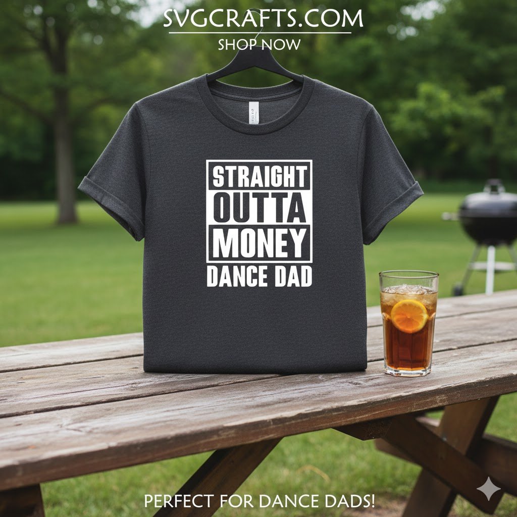 Celebrate the ultimate Dance Dad with this hilarious ‘Straight Outta MoneySVG PNG DXF EPS digital design! Perfect for Cricut and Silhouette, create funny T-shirts, mugs, or gifts for the dad who spends it all on dance.