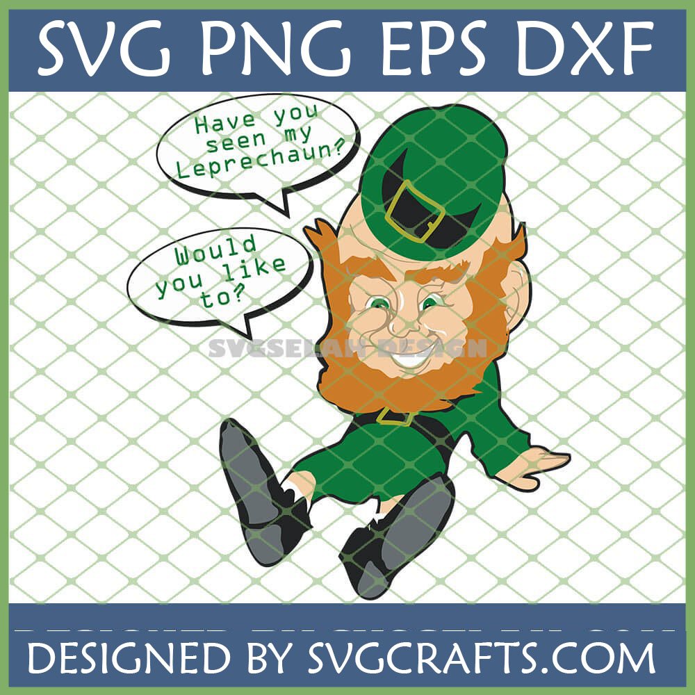 - Humorous Dialogue: Two engaging speech bubbles read, “Have you seen my Leprechaun?” followed by the cheeky invitation, “Would you like to?”. This playful exchange adds a unique, memorable twist to traditional St. Patrick’s Day Leprechaun designs.