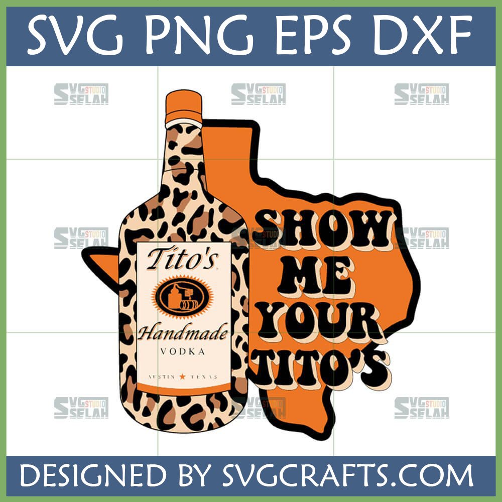 Unleash your playful side with our Funny Texas Tito’s SVG featuring a trendy leopard print vodka bottle and “Show Me Your Tito’s” slogan, perfect for Cricut t-shirts, mugs, and gifts for any Texas or Tito’s lover!
