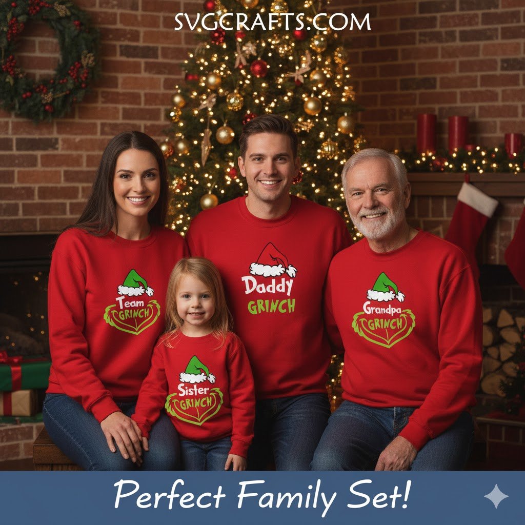 - Custom Family Titles: The bundle includes unique designs for Daddy Grinch, Mommy Grinch, Grandma Grinch, Grandpa Grinch, Uncle Grinch, Granny Grinch, Sister Grinch, and ‘Team Grinch’ ensuring everyone feels included.