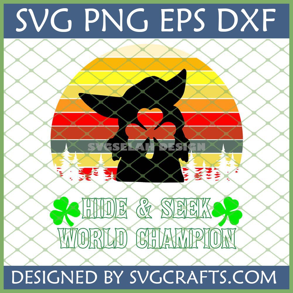 - Humorous Caption: The bold text ‘HIDE & SEEK WORLD CHAMPION’ playfully highlights Grogu’s small stature and mischievous personality, making it a truly funny Grogu SVG.