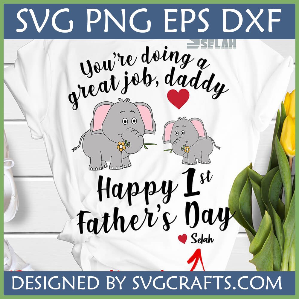 A: This Happy 1st Father’s Day Elephant SVG specifically highlights the “1st Father’s Day” milestone and includes the loving message “You’re doing a great job, daddy,” making it incredibly relevant and personal for a first-time father. The cute elephant duo symbolizes the new family bond.