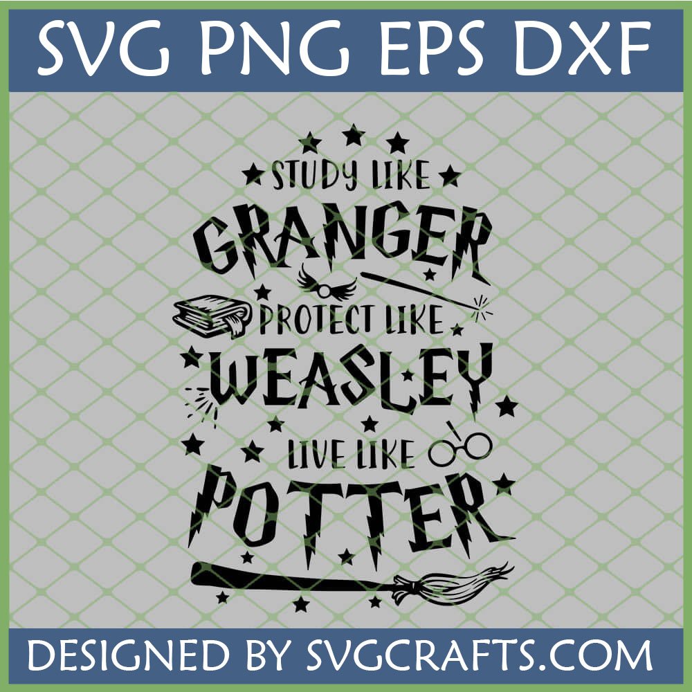 Harry Potter Inspirational SVG: Study Like Granger, Protect Like Weasley, Live Like Potter Digital File