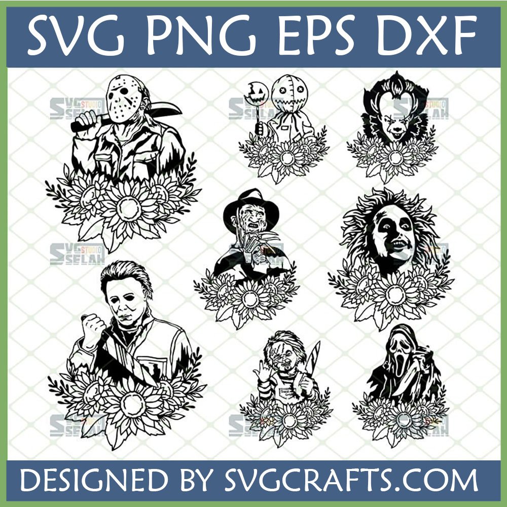 Horror Movie Characters Sunflower SVG Bundle Spooky Cute Halloween Craft Files