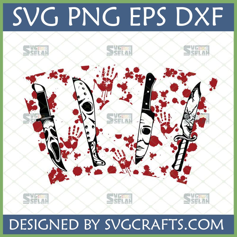 Unleash your inner horror fan with this iconic Horror Movie Knife SVG Bundle, featuring weapons from classic slasher films like Scream, Friday the 13th, Halloween, and A Nightmare on Elm Street, complete with blood splatters for the ultimate ‘Spooky Season’ craft.