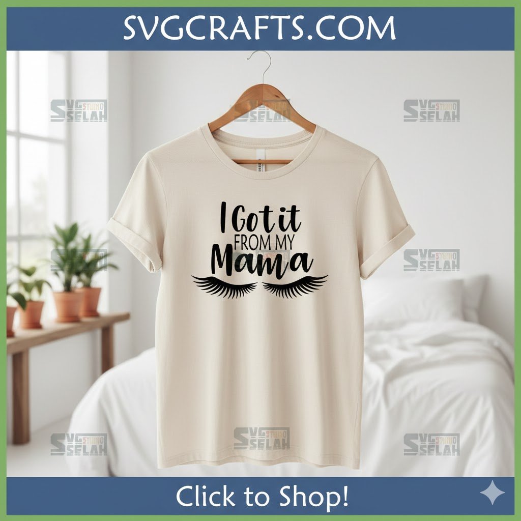 - Eyelashes & Text: A chic and playful rendition featuring elegant, prominent eyelashes beneath the ‘I Got It From My Mama’ phrase. This version subtly highlights inherited beauty, charm, and a knowing wink.