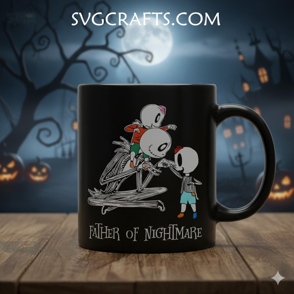 This exclusive design from SVGcrafts reimagines Jack Skellington as the ultimate ‘Father of Nightmare,’ blending the iconic aesthetic of the movie with the tender theme of fatherhood. Every detail is crafted to evoke emotion and style: