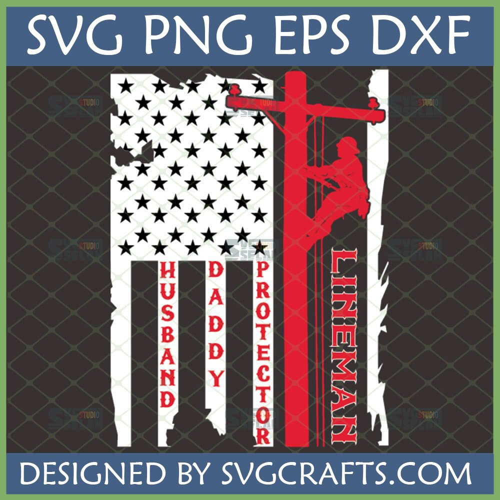 Patriotic Lineman American Flag SVG for Husband Daddy Protector Digital Design File