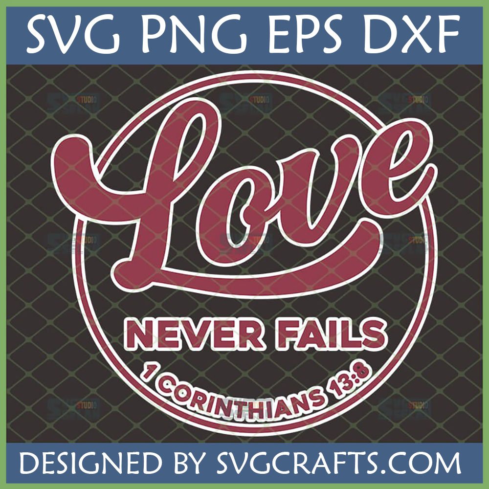 Love Never Fails SVG | 1 Corinthians 13:8 Christian Faith Design File