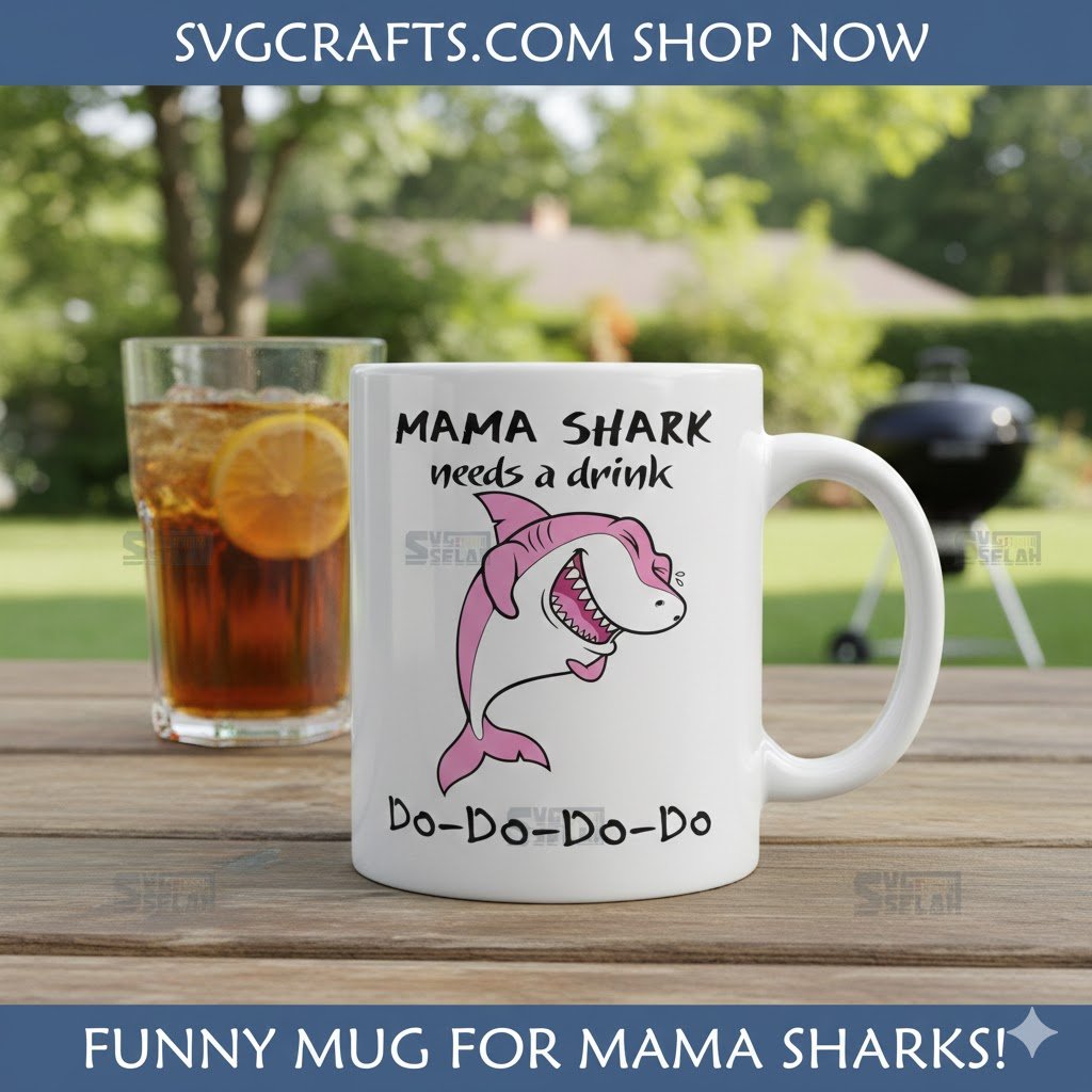 Quench your crafting thirst with our hilarious Mama Shark Needs a Drink SVG! This funny, relatable design is perfect for Cricut, sublimation, or any DIY project, celebrating mom life with a playful twist.
