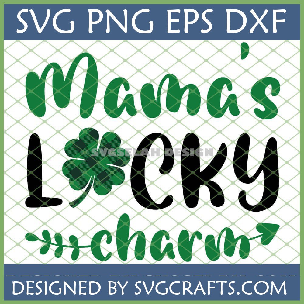 - Festive Plaid Elements: “Mama’s” and “charm” are rendered in a cozy, green plaid pattern, adding a rustic and traditional St. Patrick’s Day touch.