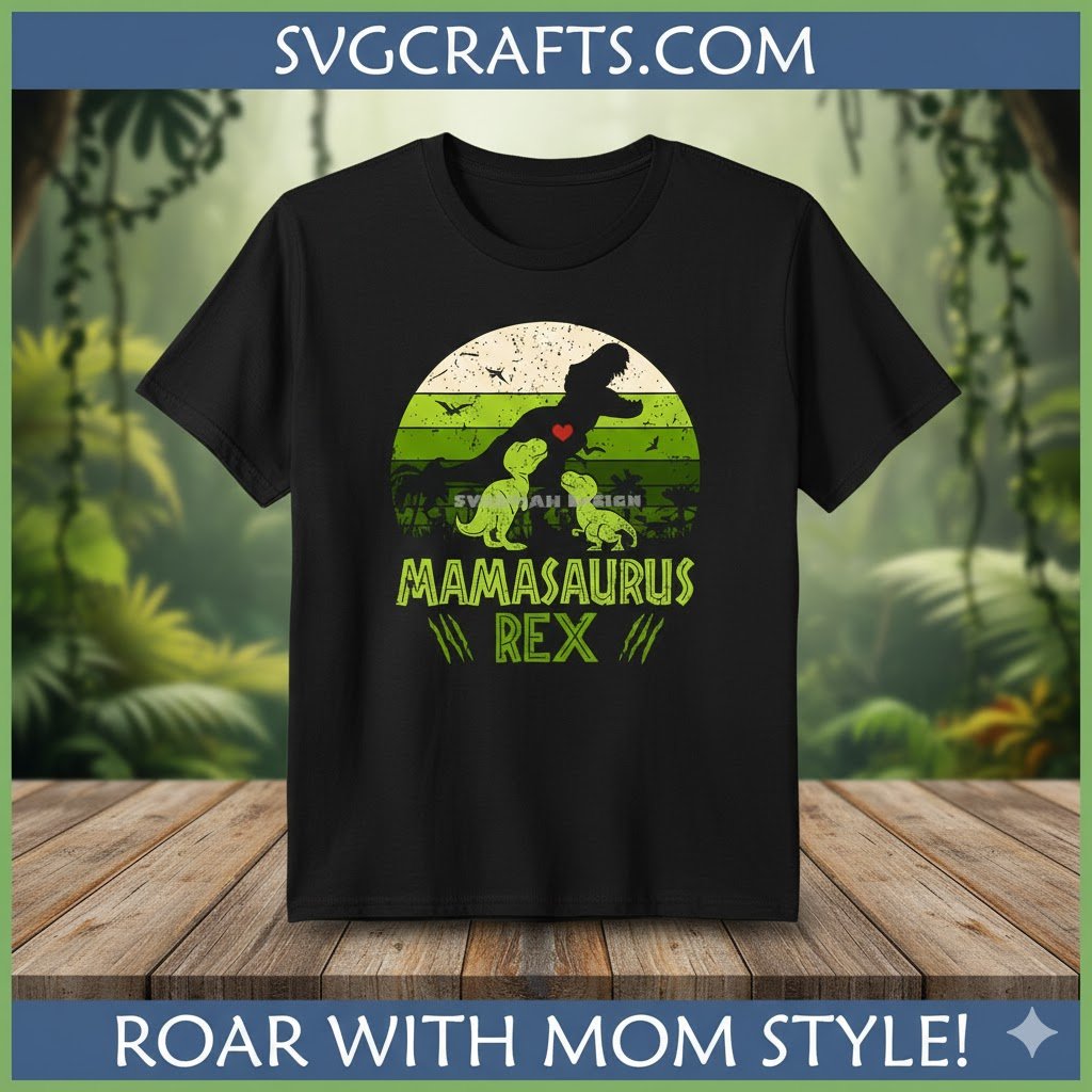 Our Mamasaurus Rex SVG taps into popular ‘Mom Life’ trends seen across TikTok and Instagram, resonating with communities who cherish family and a good laugh. It aligns with the timeless appeal of dinosaur themes, reminiscent of Jurassic Park fandom, and the enduring popularity of ‘Mama Bear’ designs. This design is perfect for those who embrace #DinoMom, #MomLifeIsTheBestLife, and #RetroVibes on social media, making it a fantastic addition to any collection of unique, trending designs.