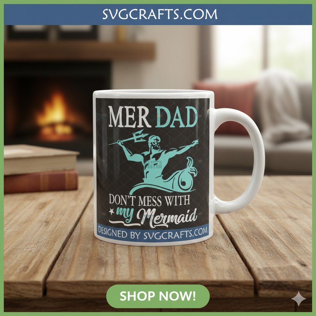 Show off your amazing creations with our Mer Dad SVG! Join the crafting community and share your personalized T-shirts, mugs, and gifts on social media. Tag us and use hashtags like #MerDadSVG #GirlDad #Don’tMessWithMyMermaid #FatherhoodGoals #CricutDad #SVGcrafts. Inspire others with your unique projects and celebrate the awesome ‘Mer Dads’ in your life!