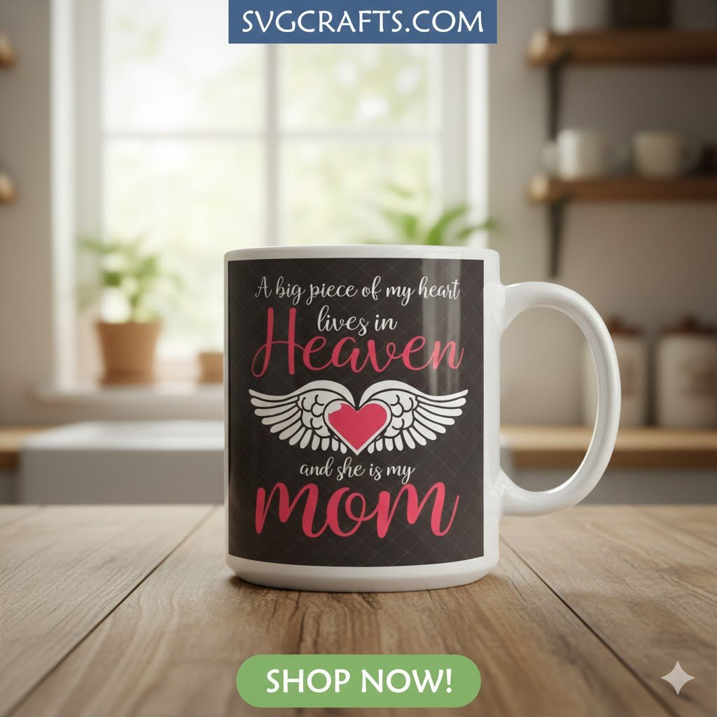Honor your beloved mother with our **Mom In Heaven SVG File**, featuring a heartfelt message and angel wings. Perfect for **Cricut** and **sublimation**, this **memorial SVG** is ideal for creating touching tributes on shirts, mugs, and more.