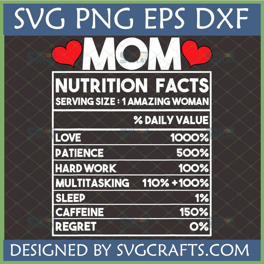Ready to celebrate the amazing mom in your life? Add this unique Mom Nutrition Facts SVG to your cart today and start crafting a gift she’ll cherish forever! Designed by SVGCrafts, your trusted source for premium digital designs.
