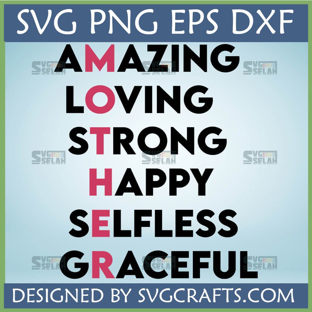 This Amazing Loving Strong Happy Selfless Graceful Mom SVG is an ideal choice for: