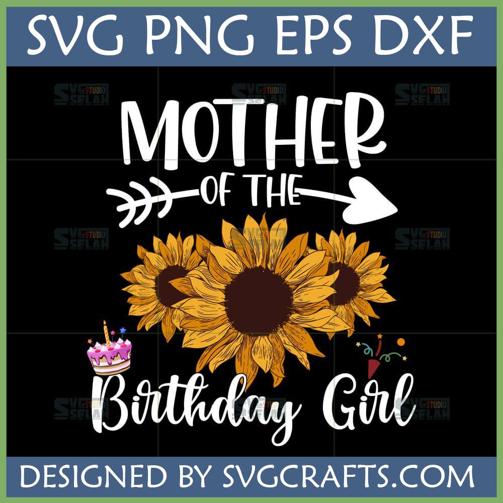 Celebrate Her Special Day: Mother of the Birthday Girl SVG with Sunflowers & Cake