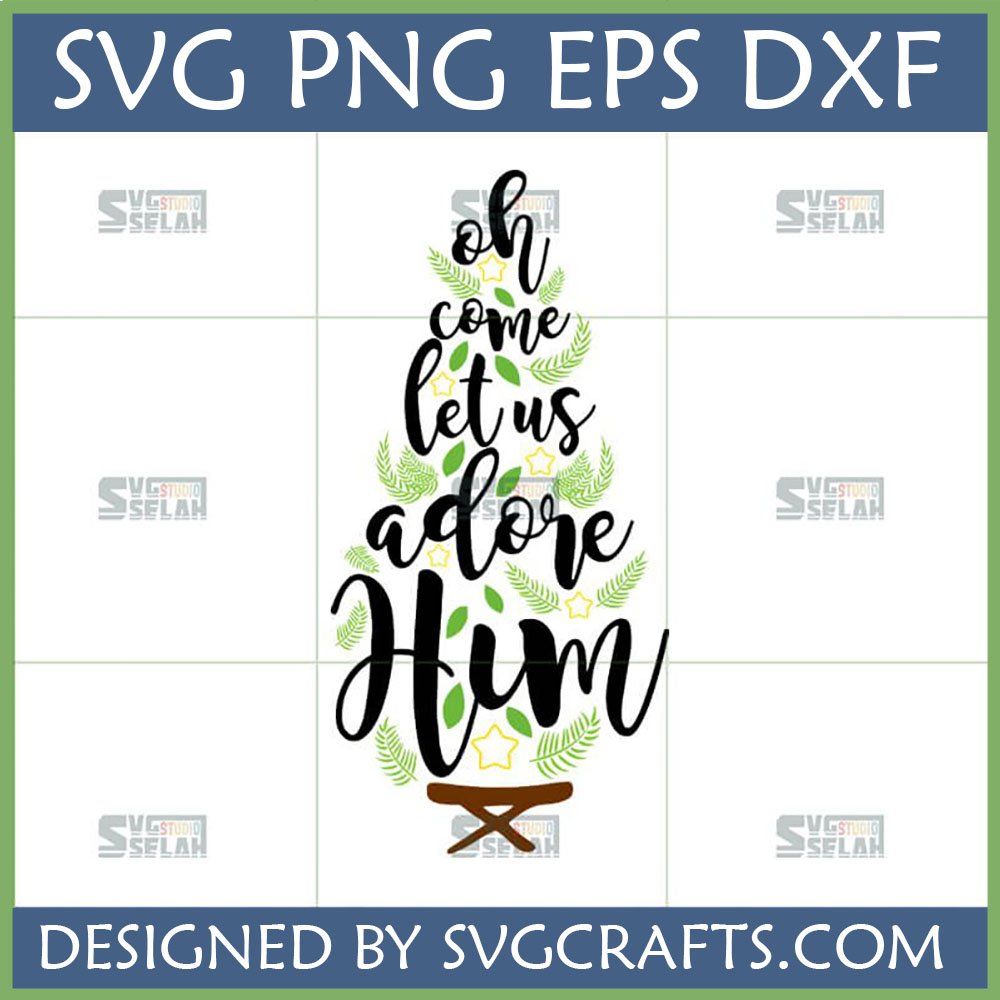 Oh Come Let Us Adore Him SVG & Nativity Christmas Tree Design