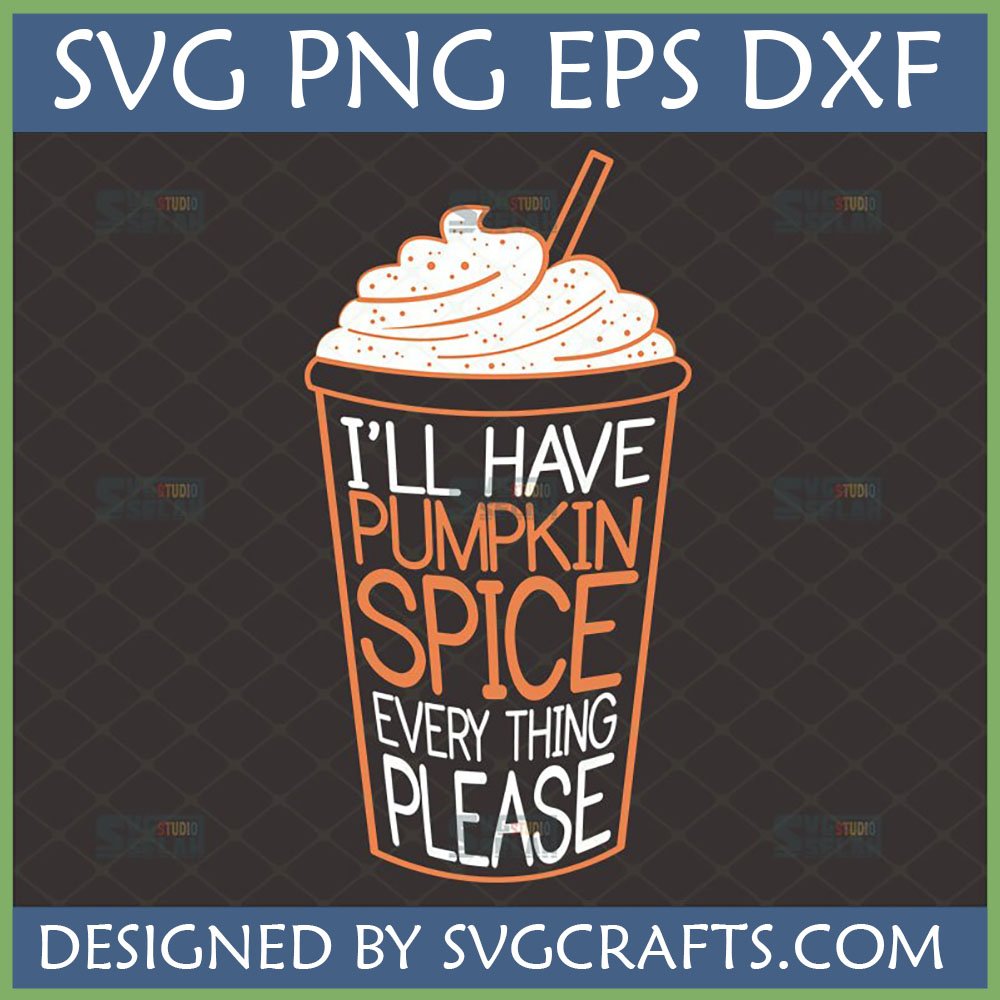 Our Pumpkin Spice Everything SVG features a beautifully rendered latte cup, overflowing with fluffy whipped cream and delicate sprinkles, topped with a straw. The iconic phrase, “I’LL HAVE PUMPKIN SPICE EVERY THING PLEASE,” is boldly displayed within the cup, making a clear and humorous declaration of fall devotion. This design is: